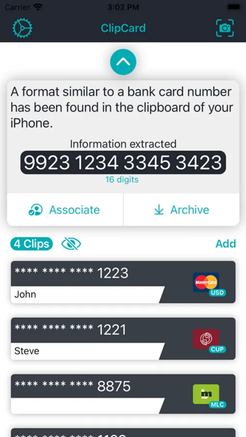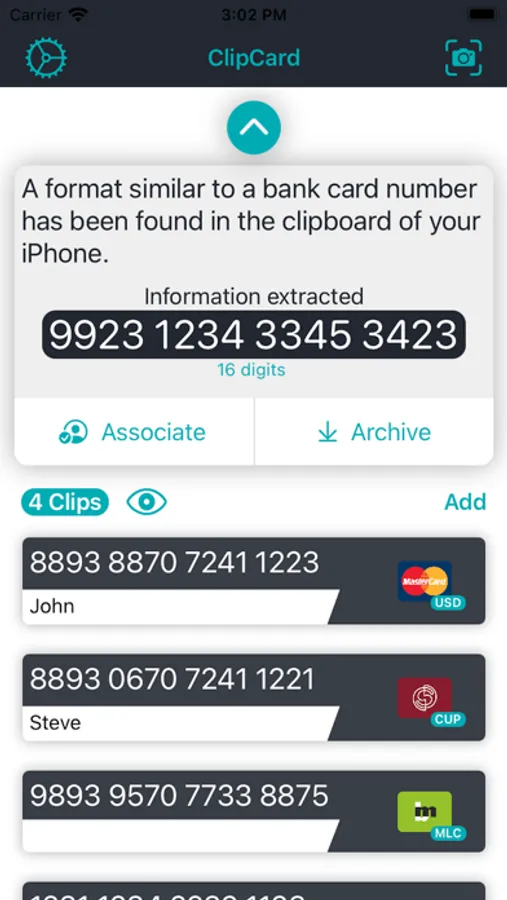 ClipCard is an innovative application that allows users to easily capture and save important information by detecting and copying text formats of interest. Whether you need to save information from bank cards, phone numbers, or other text formats, ClipCard is the perfect tool for real-time information management.