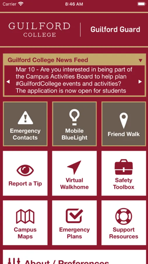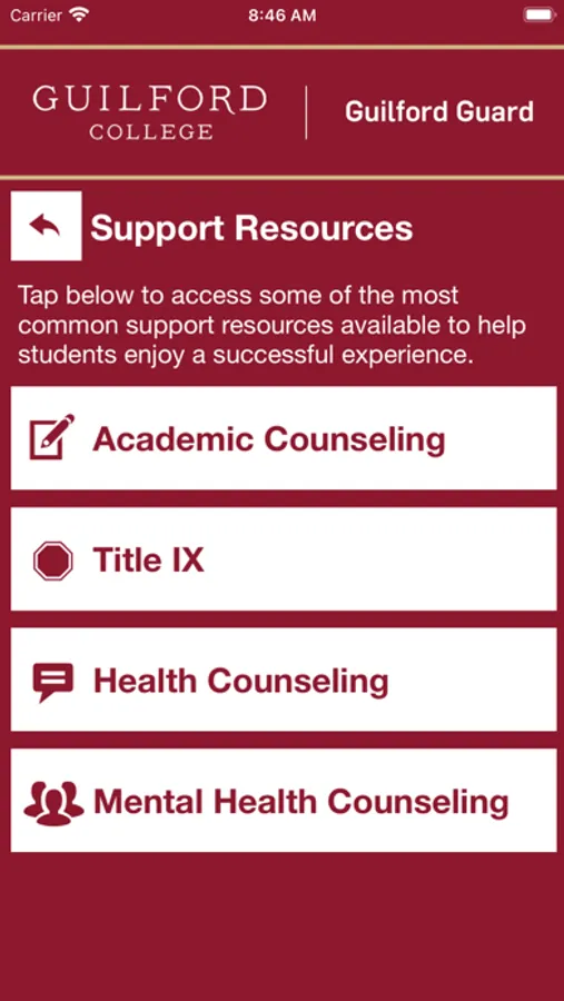 - Support Resources: Access support resources in one convenient app to enjoy a successful experience at Guilford College.