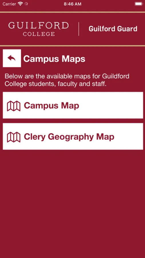 Guilford Guard is the official safety app of Guilford College. It is the only app that integrates with Guilford College's safety and security systems. Public Safety has worked to develop a unique app that provides students, faculty and staff with added safety on the Guilford College campus. The app will send you important safety alerts and provide instant access to campus safety resources.