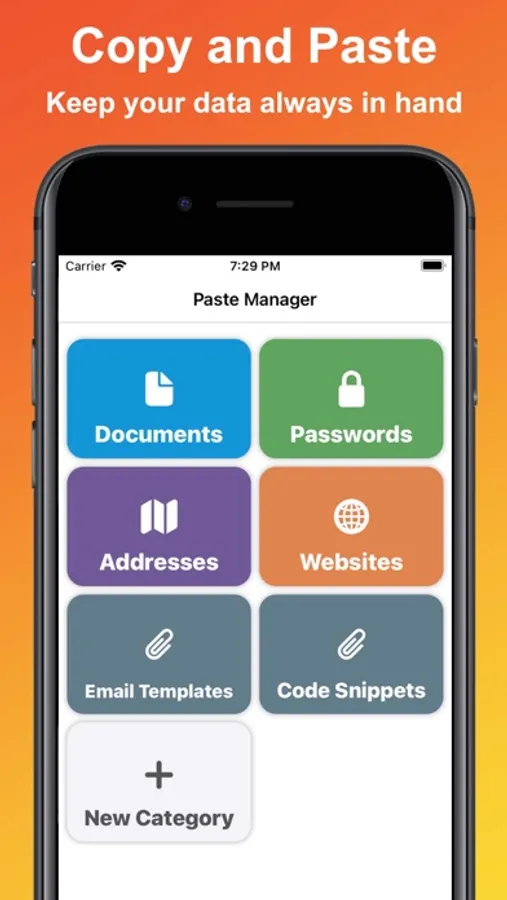 Just add your content to a category and whenever you tap it, it will be assigned to your clipboard, ready to be pasted!