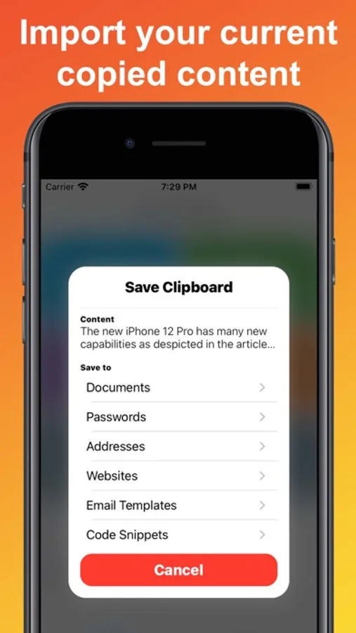 Import your current clipboard to any category with a single tap!