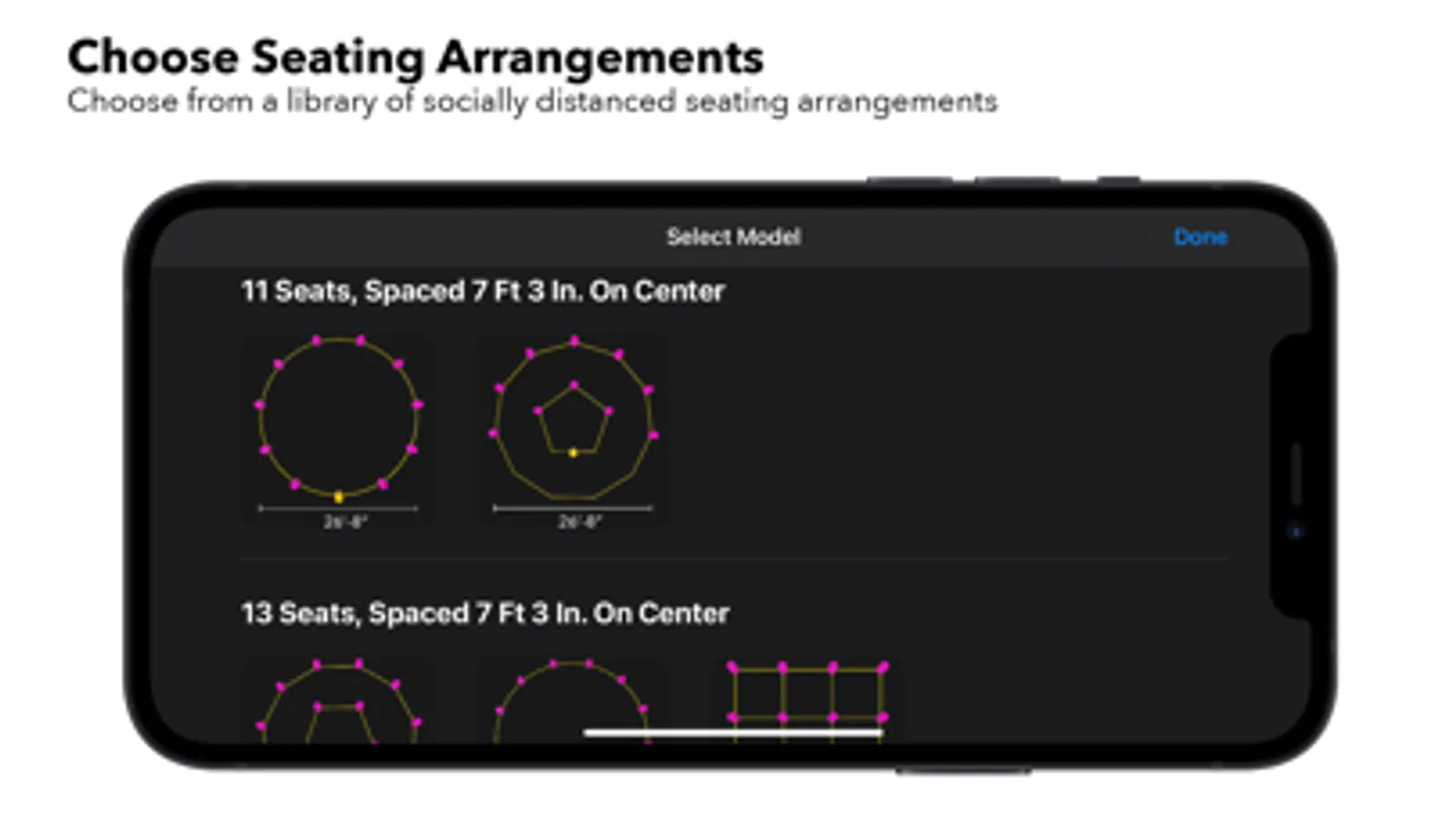 - Use a growing library of seating configurations to use - the library includes seating configurations for social distancing (6 foot) spacing between seats (15 inches).