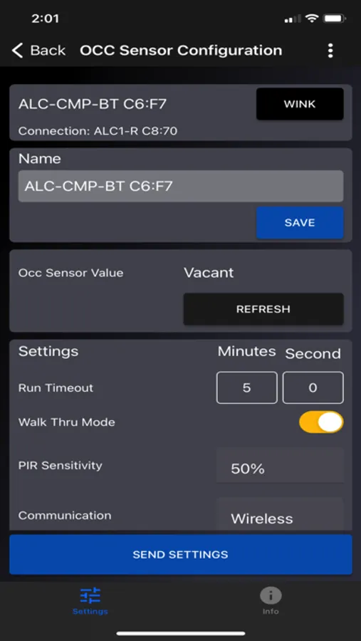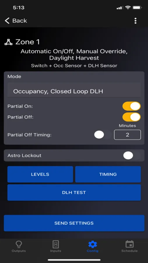 • Real-time Configuration – Use the app to adjust input settings (e.g., run level, fade time) and create time schedules for each ARISTA device. A helpful “blink” feature allows installers to quickly identify devices in the field and begin configuration.