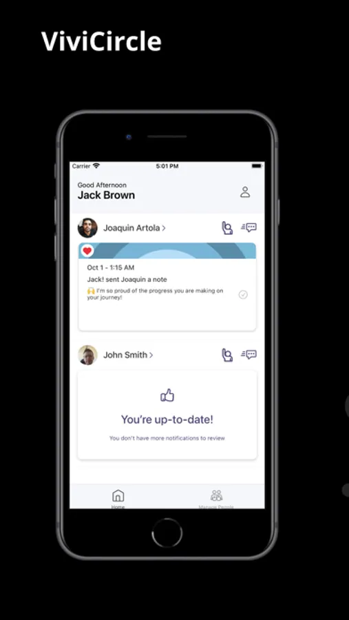 ViviCircle keeps you in the loop as a supporter to someone using the ViviCompanion app in their recovery journey. It gives ongoing insight into their activity and lets you know when they may need a word of encouragement.