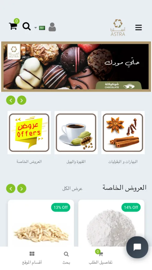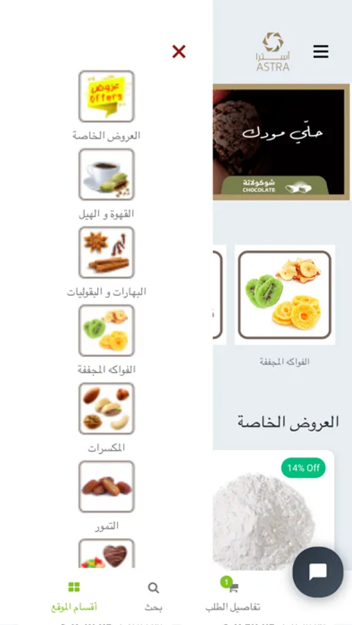 تطبيق استرا لبيع المكسرات و التوابل و القهوة