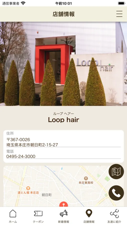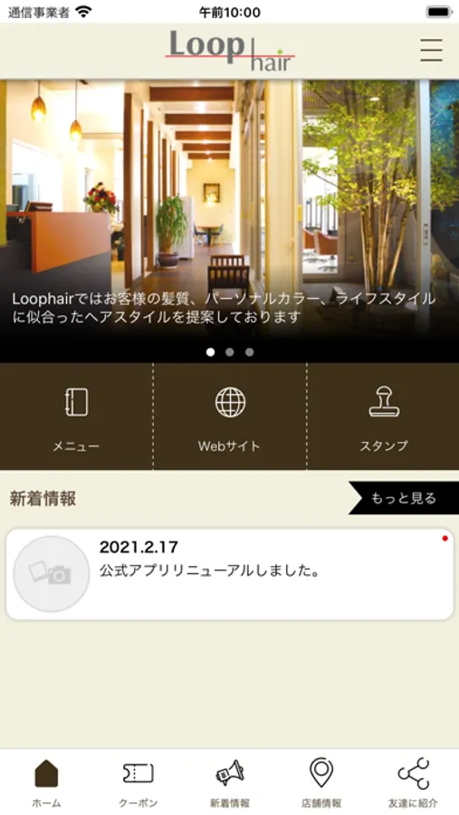 アプリを通して「Loop hair」の新着情報やお得な情報をリアル