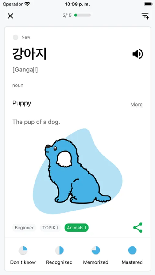 • Smart learning based on spaced learning theory to learn new Korean words faster.