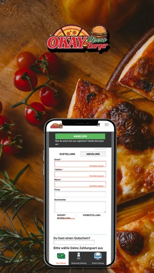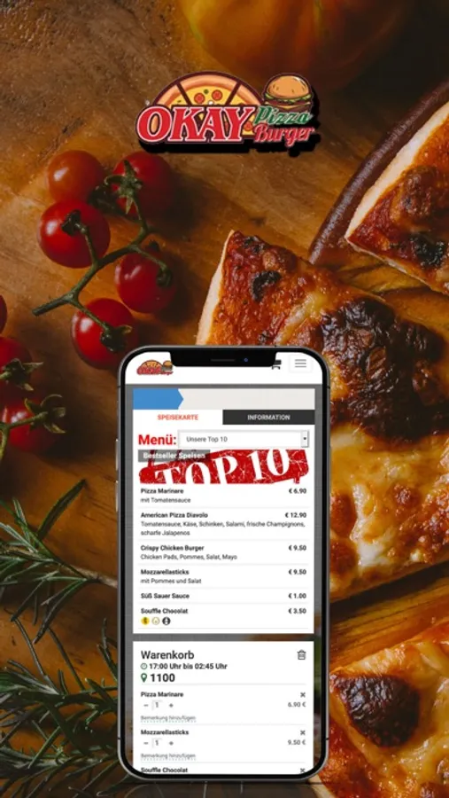 Jetzt KONTAKTLOS über unsere neue Okay Pizza & Burger App bestellen und Essen genießen!