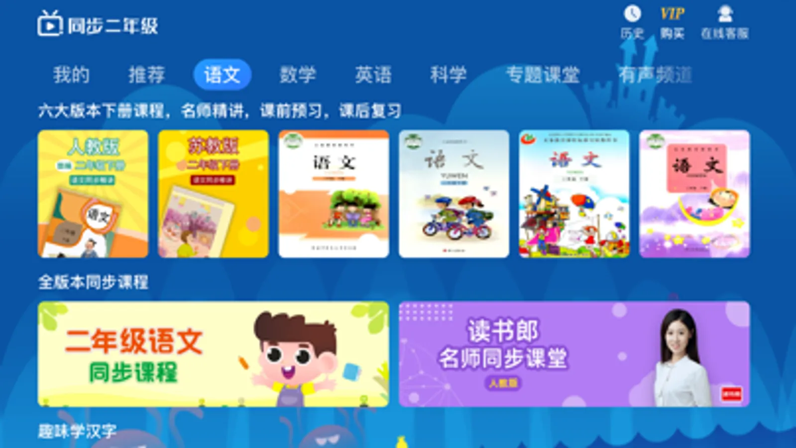 小学二年级同步课堂:语文、数学、英语上下册跟教材完全同步的辅导课程。