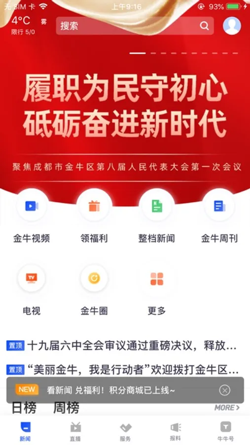 “掌上金牛”移动客户端(APP)设置新闻资讯、视频直播、文明实践、政务服务、问政爆料等主频道,可以实现周刊、电视、网站和各主要新媒体矩阵平台的一键阅读。重点打造“文明实践”和“政务服务”两项主要功能,并为金牛辖各部门、街道、社区开通“牛牛号”,共同建设金牛政务传播矩阵。服务功能包括爆料、投诉、缴费、查询、出行、教育、医疗和网上办公等,持续以“智慧城市、智能终端”为前景不断拓展。城市脉动一屏纵览,功能金牛一键联通,是金牛主流新媒体,金牛人自己的移动端。