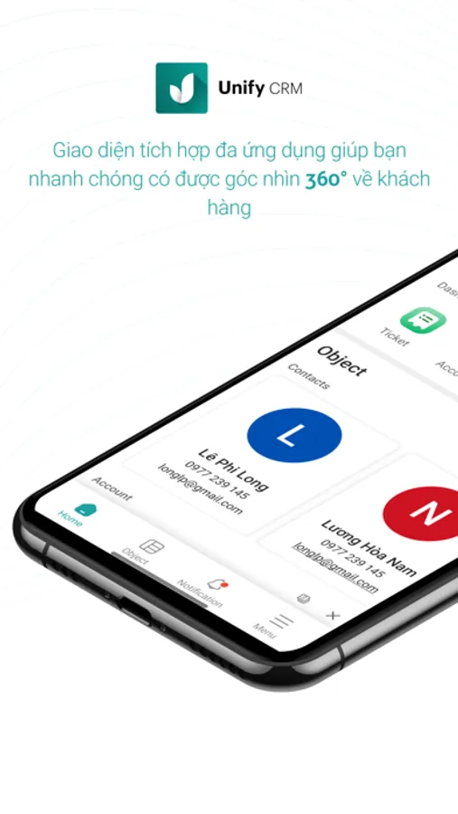 This app is a Mobile version of CRM Web full feature, with this app you can create and manage Tickets, relationship between Objects, this app also provide Report, Dashboard, Consolidated View useful for your management in details or summary level.