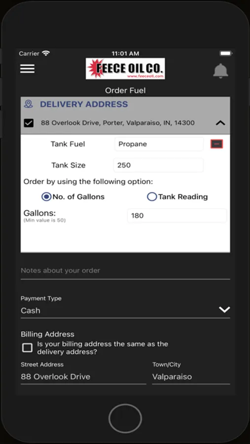 The Feece Oil app allows you to order fuel real-time from your mobile device.
