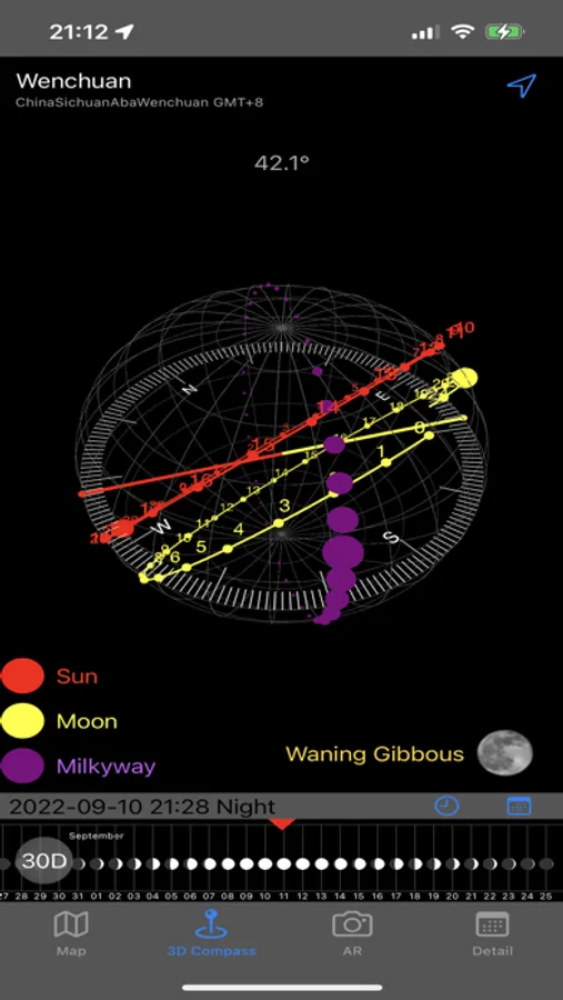 Local 3D compass -- calculate the orientation of the sun, moon and galaxy at the current position of the device in the form of 3D compass.
