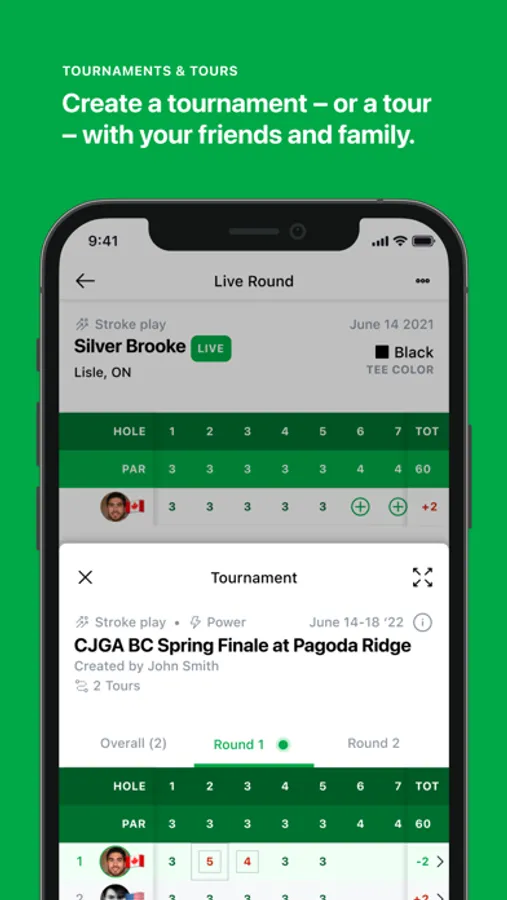 Create your own Tour and connect and compete globally with pros and celebrities alike
