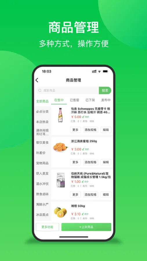 主要的功能包括:商户入驻、商品管理、运营管理、订单管理、配送管理、会员管理、经营数据、门店日常工作及联系客服等功能服务。