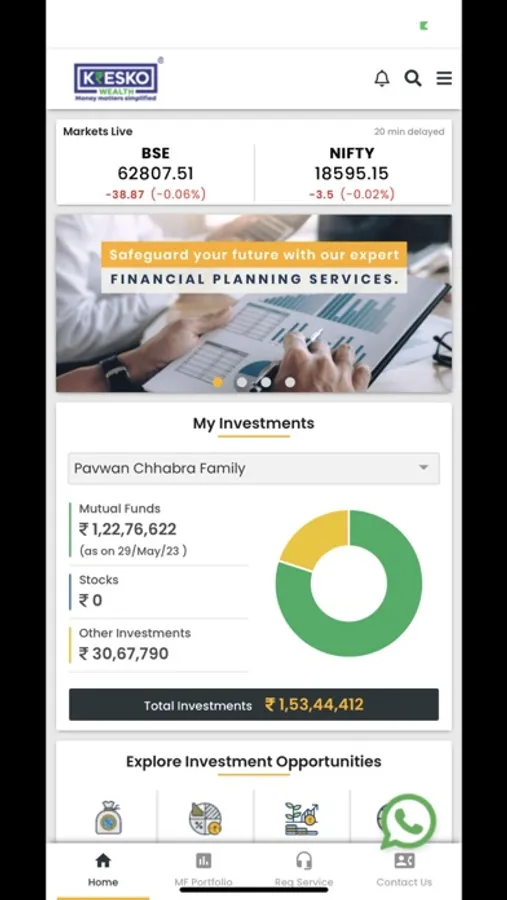 With Kresko Wealth App, you can get several views of your portfolio which will not only keep you abreast about its latest status, but also help you making important decisions for investment re-balancing, profit booking or stopping loss.