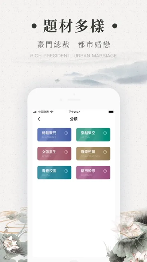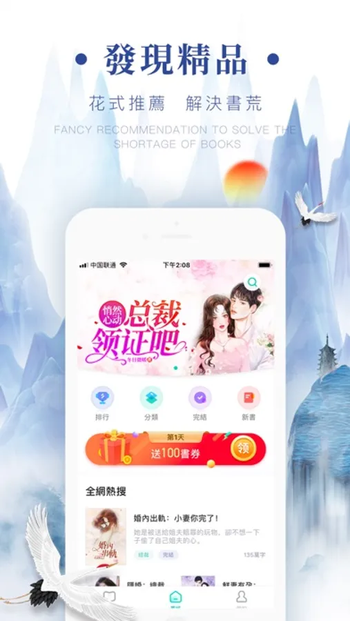 熱門分類,總裁豪門、穿越架空、都市婚戀、女強重生……,總有一款適合你。