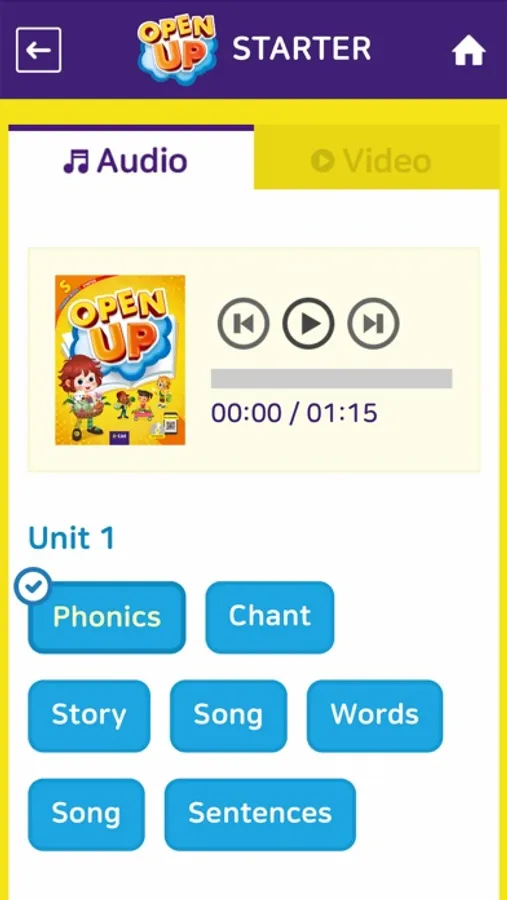 The Open Up app includes free audio tracks, videos, and games in every unit.