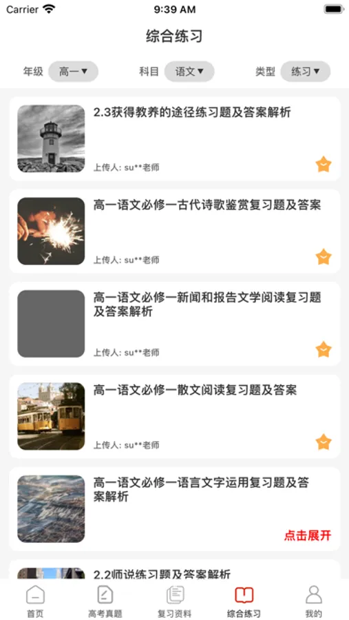 包含各学科的复习资料和复习总结