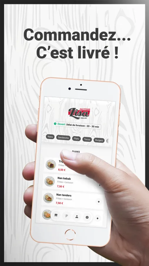 Commandez de délicieux plats chez Lisa Fastfood sur votre smartphone ! En livraison ou à emporter, à vous de choisir.