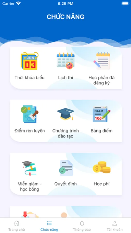 Danh sách hệ đào tạo đang được hỗ trợ:
