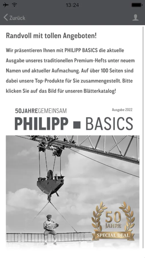 Wir haben unsere neue App für Sie moderner und schlanker gestaltet. Unsere Dokumente sind weiterhin für Sie online und immer aktuell verfügbar. Sie haben Zugriff auf Einbauanleitungen, CAD-Zeichnungen, Animationsfilme und Prüfpflichten. Außerdem erhalten Sie direkte Nachrichten über unsere Aktionen und Neuigkeiten auf unseren Social-Media-Kanälen. Auch für Planer und Architekten ist ein neuer Menüpunkt vorhanden. Wir freuen uns sehr über Ihr Feedback, dies können Sie auch gerne direkt über die neue App weitergeben. Für Fragen und Wünsche stehen wir Ihnen jederzeit zur Verfügung. Und das Beste: Unsere App ist natürlich weiterhin kostenlos und wird stetig aktualisiert. Ihr Team der PHILIPPGRUPPE