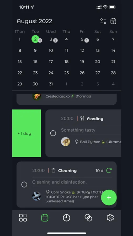 Obesity is one of the most common reptile diseases. The application will help you meet the required feeding intervals and does not offer food more often than necessary. When it's time to feed, the app will send a notification.