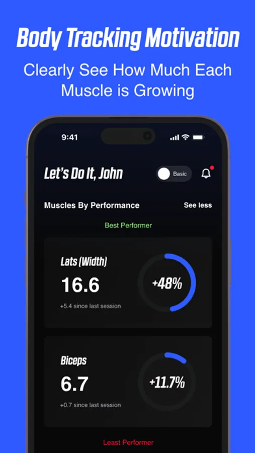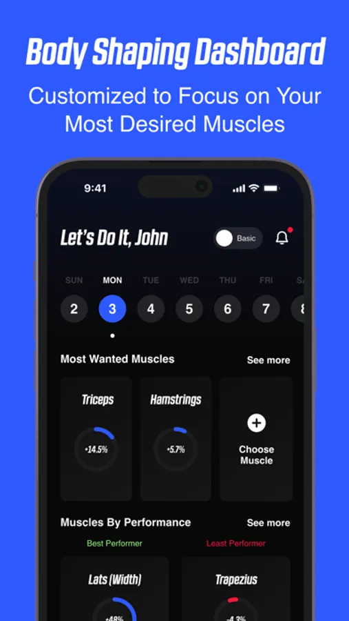 - Most Wanted Muscles: See progress and get feedback on your most desired muscles that make the greatest impact to your body shape.