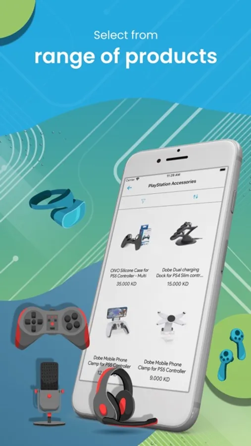 Gaming accessories like Joystick and Gaming Monitors.