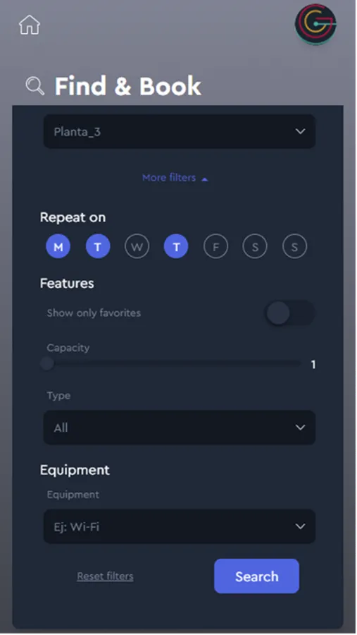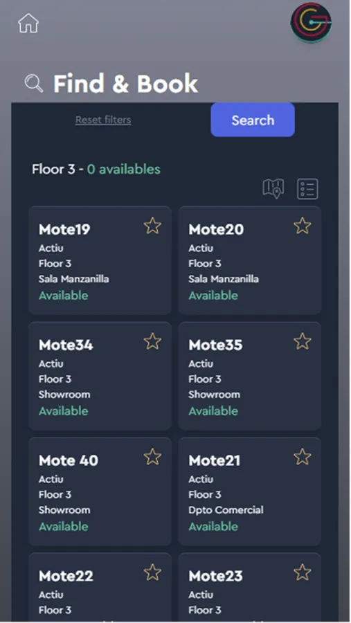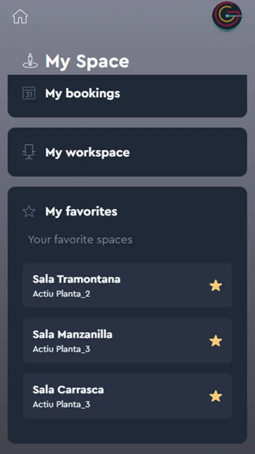 My Space: Accede a tus reservas, recuerda su ubicación, modifícalas ¡haz lo que necesites, cuando lo necesites! Desde esta sección también puedes gestionar tu puesto de trabajo asignado trasladando cualquier incidencia de inmediato. Y si tienes sitios preferidos, ¡márcalos como Favoritos y tenlos siempre a mano!