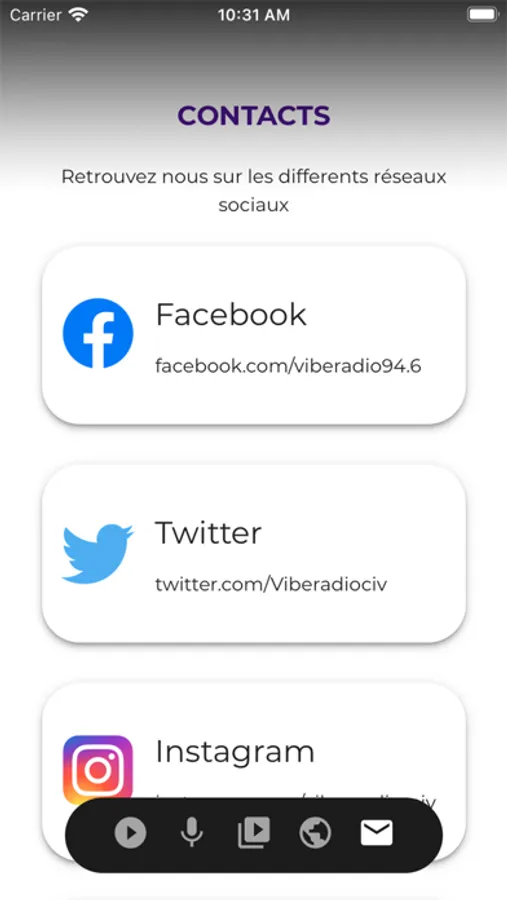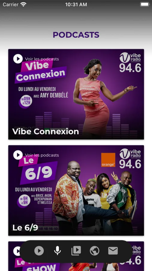 Tous les hits ivoiriens, africains et internationaux mais aussi tous les programmes de VIBE RADIO : le 6/9 de Konnie et Eric , VIBE CONNEXION avec Amy , Teeyah, GOOD VIBE avec Eric Landry, VIBE GOSSIP avec Akon, GENERATION VIBE.ZERO avec Gérard Tallman, le VIBE NIGHT SHOW avec Brice Anoh et sa team, VIBE NIGHT MIX avec DJ Rodhia mais aussi plein d'autres surprises on air tous les jours.
