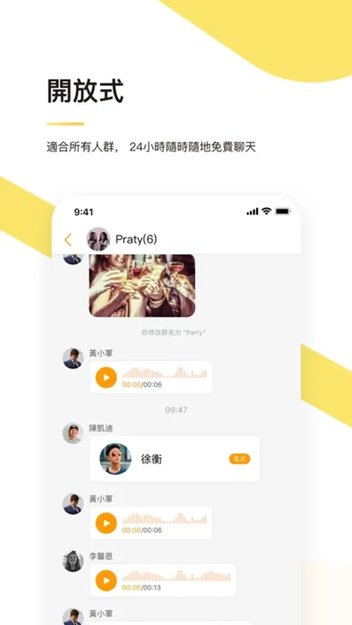 免費提供多功能溝通工具, 具有無限制的文本、語音、圖片,群組聊天功能, 讓用戶能隨時隨地輕鬆聯繫。