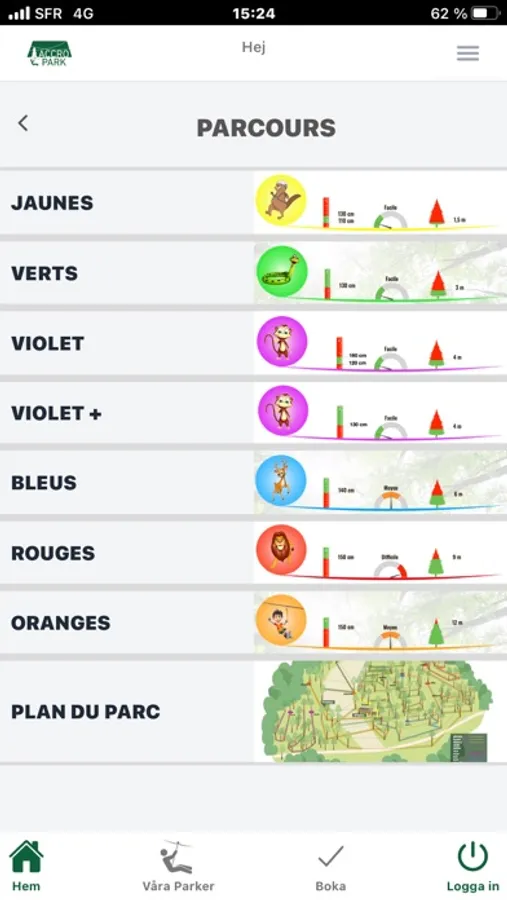 Discover all the information about our parks: opening hours, access to maps, details of the routes ... and book directly online with the ACCROPARK app.