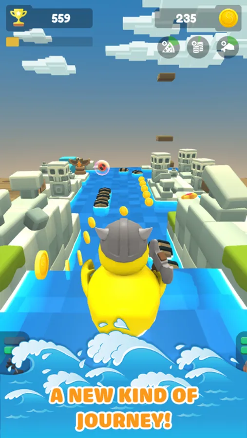 Splash! The legendary rubber duck has fallen into a torrential river. It needs your help to skilfully avoid all obstacles and enemies.