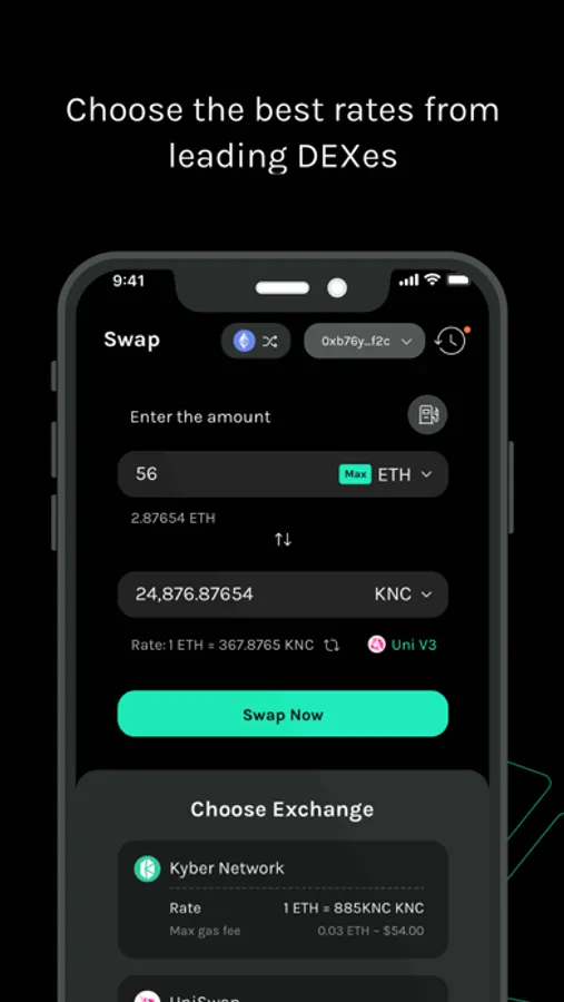 - Krystal provides you one-click access to different DeFi exchanges: Kyber Network, Uniswap v2, Uniswap v3 (coming soon), SushiSwap (coming soon), PancakeSwap, QuickSwap (coming soon). When you swap tokens, we choose the exchange that provides you with the best rate and lowest gas fees.