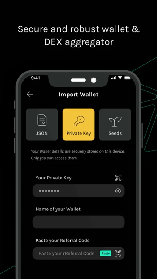 - Create a new wallet or import your existing wallet in Krystal. With Krystal, your phone is converted into a highly secure wallet, where the wallet's private keys and assets are always in YOUR control (No one else can access your wallet)