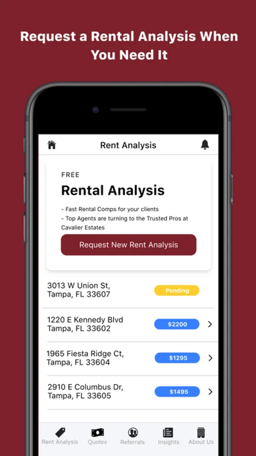 Cavalier Estates invites you into the FOLD! We want you to grow with us! Use our Professional App to provide your Investors real time rental report. When you respond to your clients fast they will recognize your confidences in your craft. Not only does our app provide you with rental reports it also will keep you informed with up-to-date laws and ordinances affecting the industry. Join the in on the opportunity and be on top of your game by utilizing our free app with unlimited property management information. The Cavalier Estates team even pays YOU when your clients work with us. We are the number one rated Property Management company in the Tampa Bay Area. We are selective in our clients and find agent referrals are the most valuable and educated owners out there. We thank you for that and we encourage you to download our app and partner with Cavalier Estates YourRentalPeople.com. You will share so much more that will earn you so much more!
