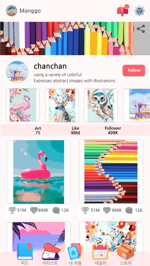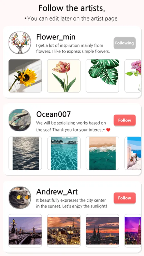 You can play the new works of the artists you follow first, and you can create your own art style.