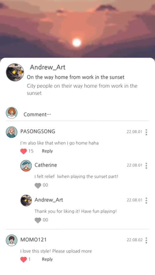 Share your playing experience with the artist and other users! Find another fun way through communication.