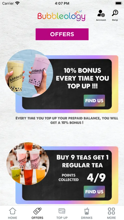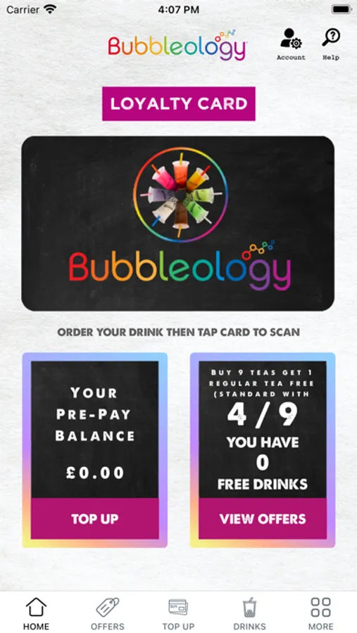 - Present the QR code to Bubbleologists in store to start collecting your points for every drink purchase you make. You can access your points balance - updated in real time.