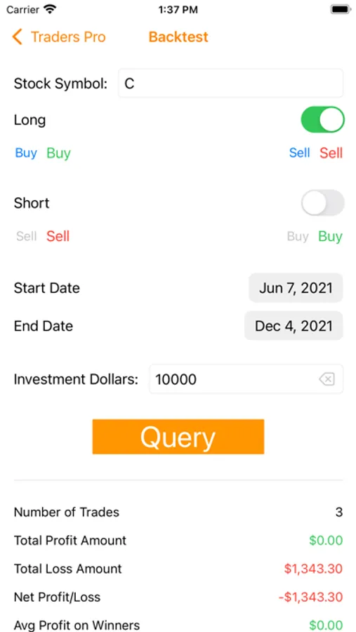 Traders can run a historical trade simulation on any stock or ETF based on the TradersPro buy signals to gauge the systems effectiveness on that stock or ETF.