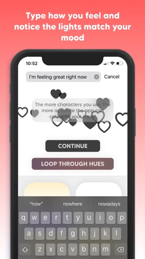 Hue Sentiment is an easy to use light app which translates text into a mood. Simply type how you're feeling and notice the lights change based on your mood.
