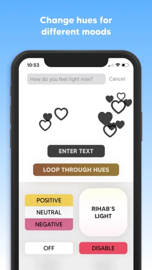 • Option to pick any hue to display when you feel positive; neutral and negative