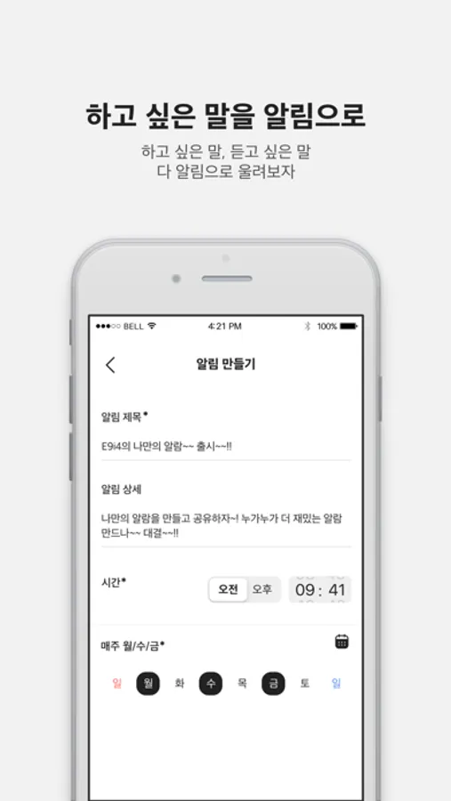 하고 싶은 말, 듣고 싶은 말 모두 알림을 울려보세요.