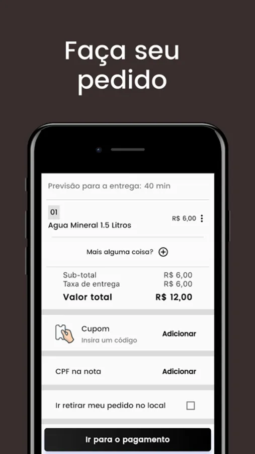 Mais que um aplicativo, é um aplicativo de delivery que permite aos seus clientes visualizarem o cardápio ofertado pelo estabelecimento e fazerem pedidos pelo smartphone, sendo uma ferramenta ideal para aumentar seus ganhos e prática facilitando que o pedido possa ser entregue onde o cliente se encontrar no momento do pedido.