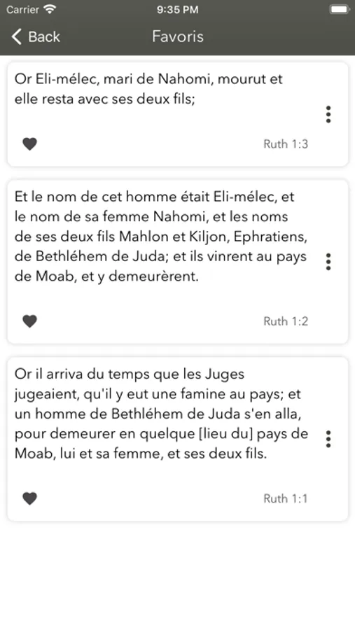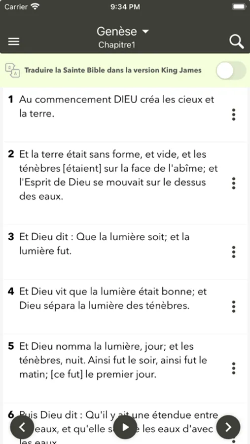 Interface intuitive et accès rapide aux livres, chapitres et versets.