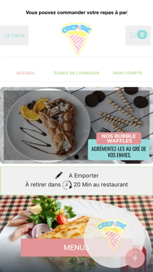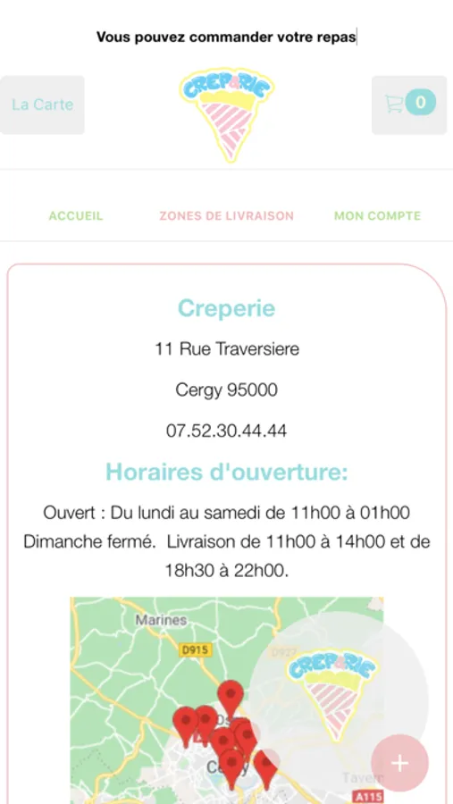 L'application Creperie vous permet de commander en ligne ou par téléphone via votre application. Vous pouvez consulter notre carte et choisir vos produits.