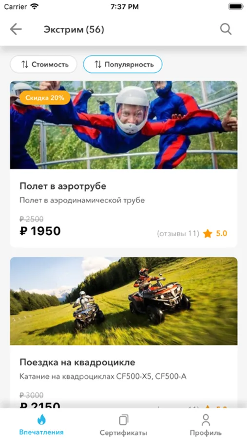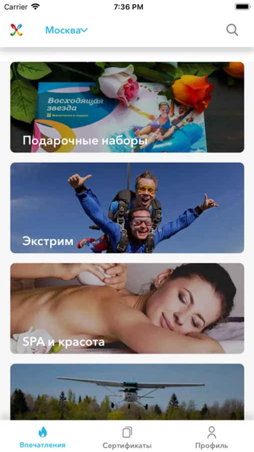 Огромный выбор подарочных сертификатов в следующих категориях: