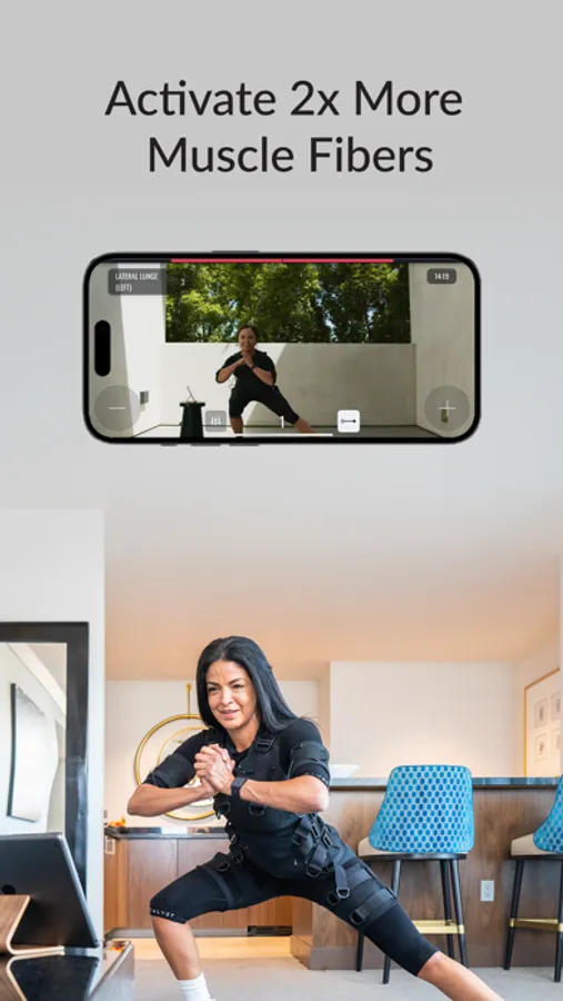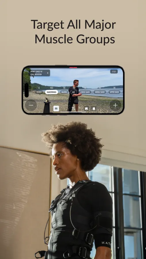Our patented training system and wearable suit, controlled by the Katalyst App, delivers specially-tuned, low-frequency impulses to each of your major muscle groups. These impulses imitate the brain signals that cause your muscles to contract and, when combined with simple, bodyweight movements, multiply the results of any exercise.