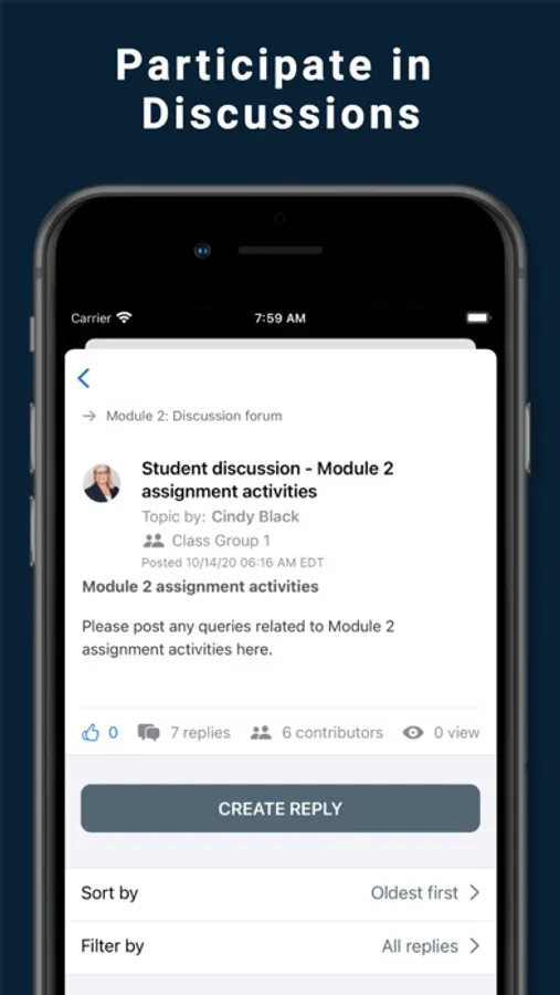 - Receive instant notifications of forum mentions, assignment updates and more